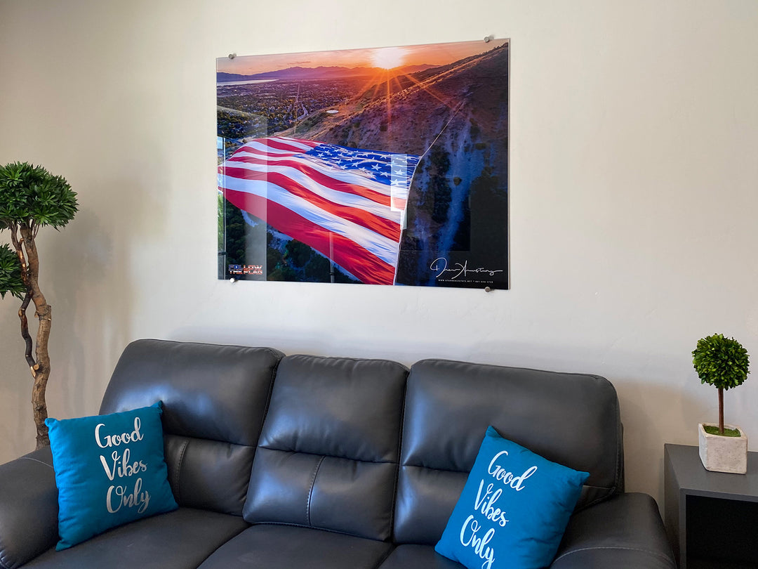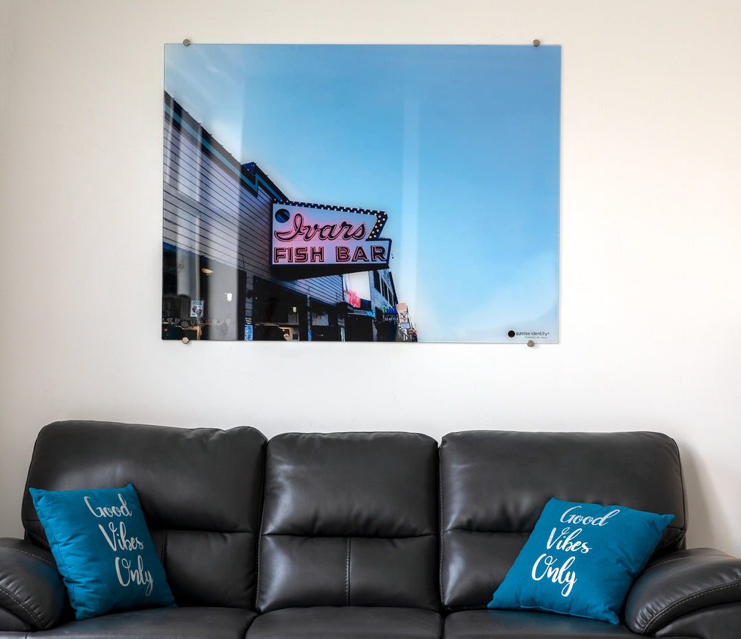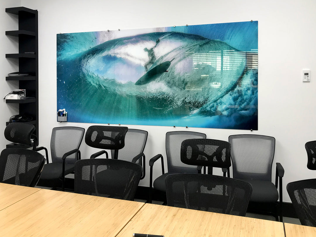 Your dream vacation spot, favorite artwork, or any image you can imagine can be custom printed on our big, beautiful glass sheets to bring your space to life. Images printed directly to glass are much more vibrant and have more brilliant color and detail than a traditional framed art print. And the impact of this large-scale artwork in your rooms will help inspire creativity, boost moods, increase employee satisfaction, and lead to world peace. (Okay, maybe not that last one, but it’s a start!)